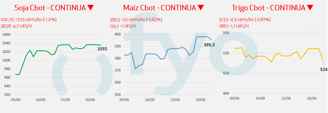 - Los futuros de trigo se negocian a la baja.