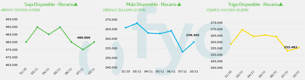 - Por trigo disponible en Rosario, valió USD 181, mismo que para una entrega diciembre.