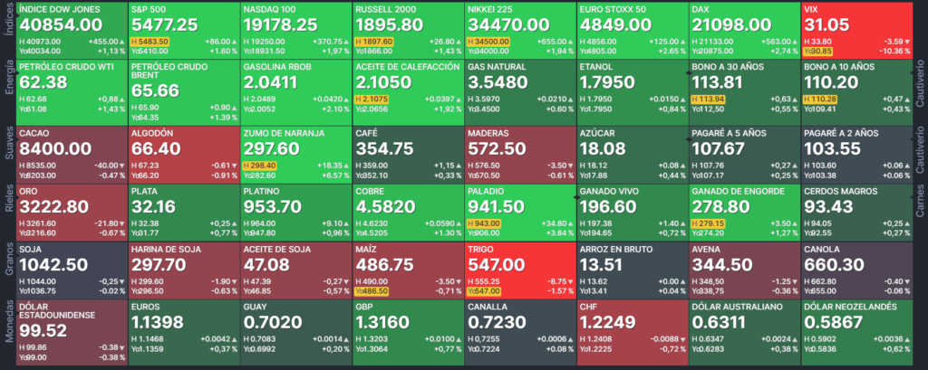 Índices, S&P500, NASDAQ 100, dow jones, DJIA.russell, S&P midcap, índice de volatilidad de S&P 500 VIX, índice de commodities S&P GSCI.