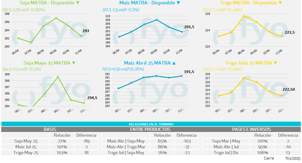 • Los mercados retroceden después de una semana alcista para el cereal, también con subas de más de un 6%, impulsada por el dólar débil y el anuncio de una caída de un 5% en los stocks finales del cereal estadounidense para la campaña 2024/25.