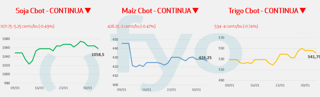 - Los futuros de soja ceden en este comienzo de semana, luego de acumular bajas del 0,3% la semana pasada cediendo ante la amplia oferta global y la firmeza del dólar, que resta competitividad a las exportaciones estadounidenses.