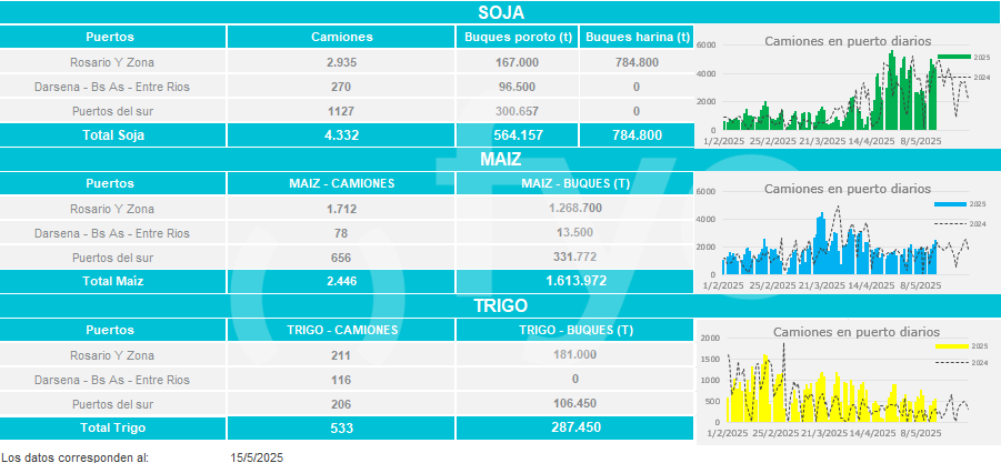 Buques: partiendo de los buques anunciados por las agencias marítimas o line-up se calculan las toneladas a cargar de cada uno de los distintos productos en cada puerto.