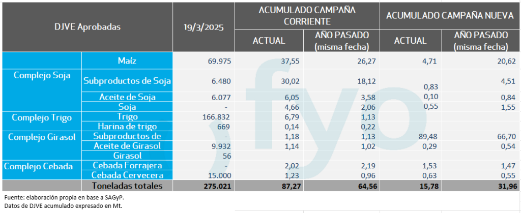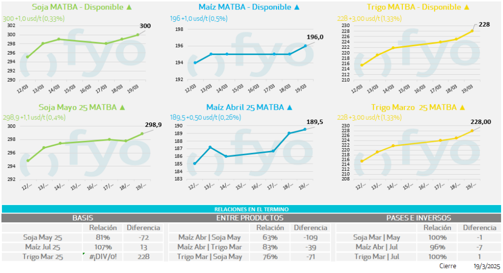Granos maíz, trigo, soja, harina de soja, aceite de soja, cebada, arroz, trigo y canola.
