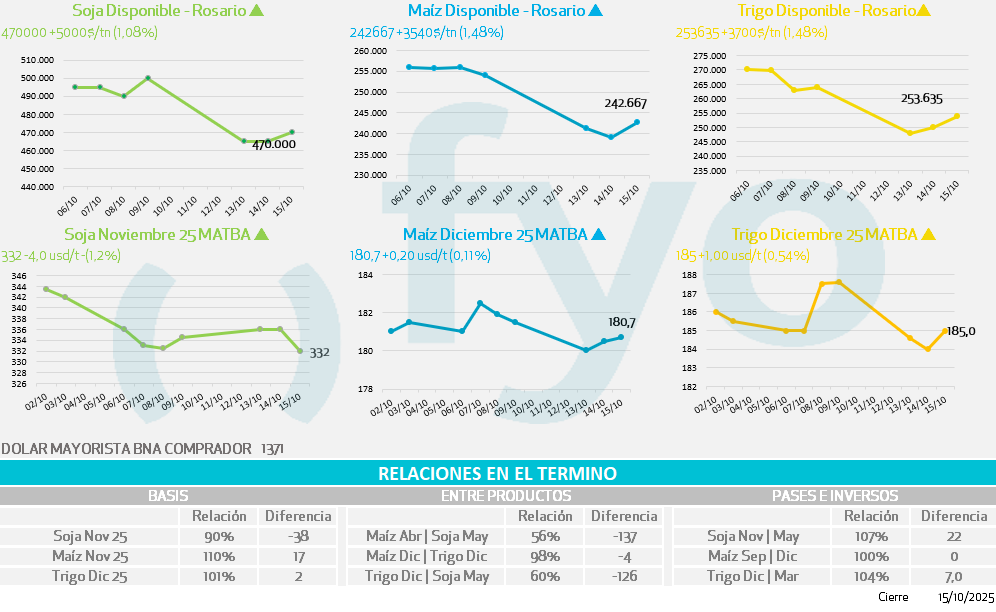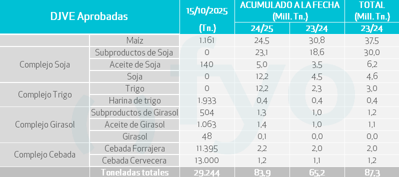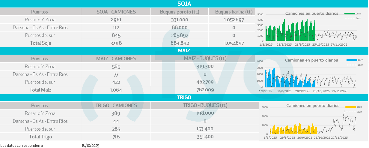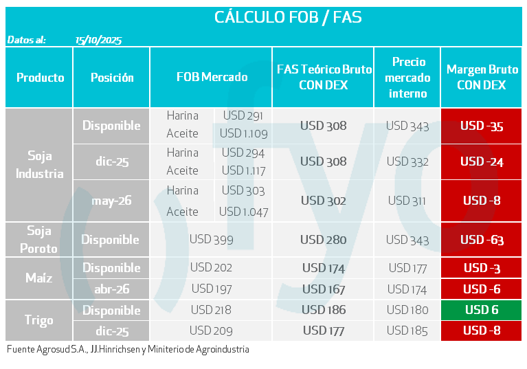 - El positivo dato de ayer de NOPA de crushing en los Estados Unidos brinda sostén. Se informó que la molienda de soja en septiembre alcanzó 5 Mt, superando las expectativas promedio de los analistas de 5,07 Mt (+4,2% vs agosto y +11,6% vs año setiembre de 2024).