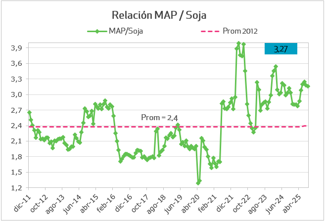 En el mercado de la urea, se observa una presión bajista a nivel global, influenciada por una sobreoferta, como quedó evidenciado en la última licitación de India, que recibió más del doble de las toneladas que finalmente compró. Sin embargo, a nivel local, esta caída de precios fue contenida por una demanda concentrada y por una escasez temporal. El mercado de fertilizantes fosfatados se encuentra experimentando un cambio de tendencia, iniciando un retroceso en los precios después de un período de aumentos sostenidos. Esta baja se debe a la estabilización de los mercados externos y al alto riesgo que enfrentan los vendedores de quedarse con stock caro e inmovilizado una vez que finalice la ventana de siembra de maíz temprano.