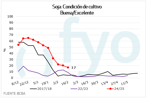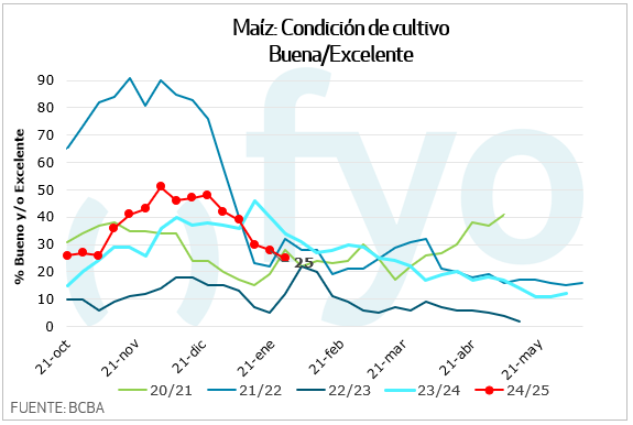 – La condición del cultivo buena/excelente disminuye 3 p.p., hasta el 25% del área sembrada.