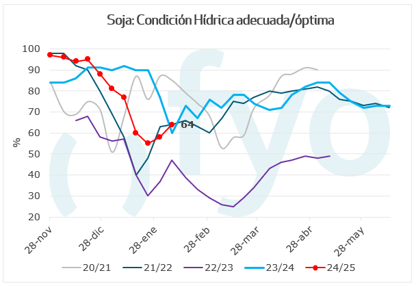 – La condición hídrica óptima/adecuada se incrementa 6 p.p., hasta el 64%.