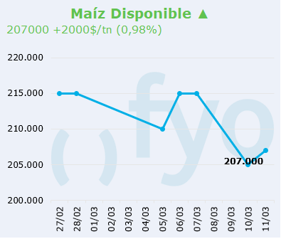 - Por maíz disponible se pagaron $ 207.000, en un mercado ya empalmado con la nueva cosecha y sin premios significativos para entregas cortas. Para entrega en marzo se pagaban USD 195, con abril en USD 194.