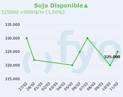 - Luego del WASDE las fábricas abrieron en $ 325.000, que fue el generalizado por soja disponible, con entrega hasta el 20/3. Solo un comprador llegó a convalidar valores superiores por una entrega aún más corta.