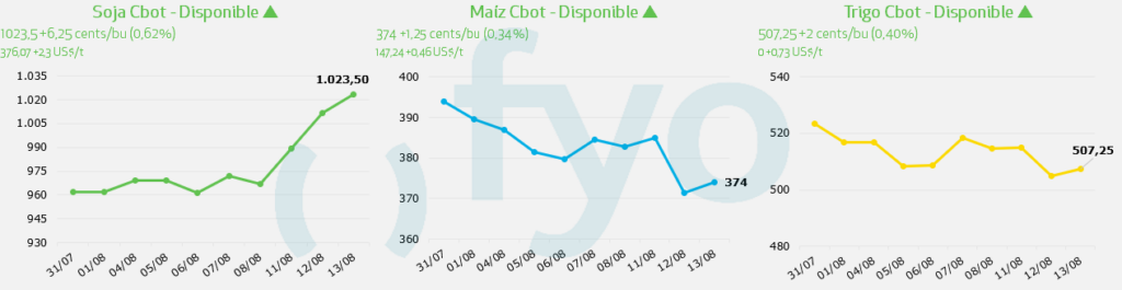 - En el mercado de aceites vegetales, Malasia elevó su precio de referencia para el aceite de palma crudo para septiembre, aumentando el arancel de exportación. Por su parte, los futuros de aceite de soja en CBOT y los de colza en Euronext registraron subas.