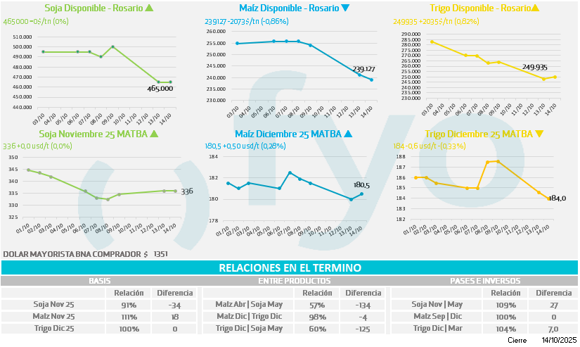 - Hoy se publicará el informe de NOPA sobre molienda de septiembre en Estados Unidos. Se espera que sean 5,07 Mt, algo menor que en agosto, pero un 5% por encima del septiembre pasado, y record para el mes.