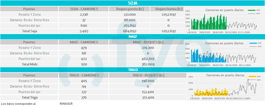 - A su vez, las exportaciones de trigo blando de la UE para la campaña 2025/26 totalizaban 5,51 Mt al 12 de octubre, un 23% menos que el año pasado,
