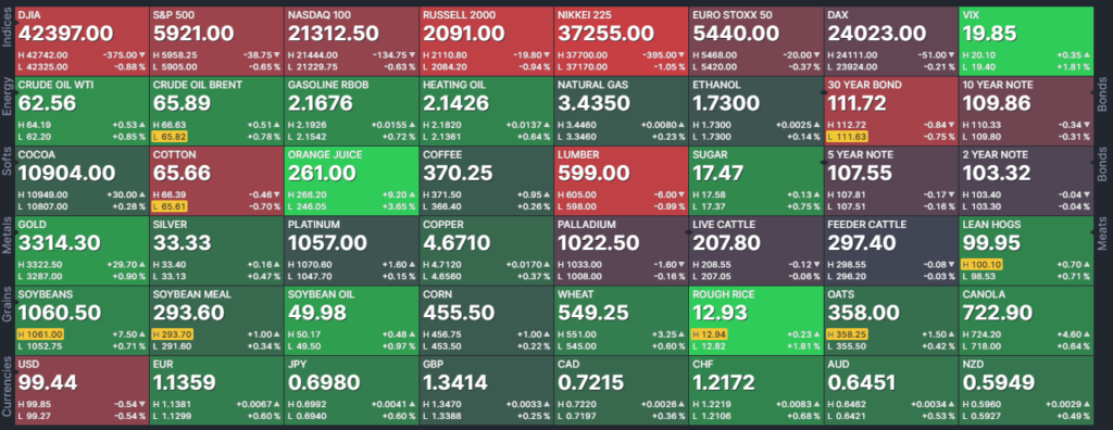 financieros bonos del tesoro de EEUU, bonos eurodollar, y tasas de la reserva federal de EEUU. Monedas índice dólar, libra, dólar canadiense, yen japonés, franco suizo,euro, dólar australiano, peso mejicano, dólar de Nueva Zelanda, rand de Sudáfrica y Rublo ruso.