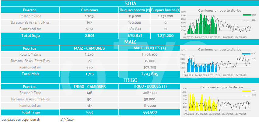 Buques: partiendo de los buques anunciados por las agencias marítimas o line-up se calculan las toneladas a cargar de cada uno de los distintos productos en cada puerto.