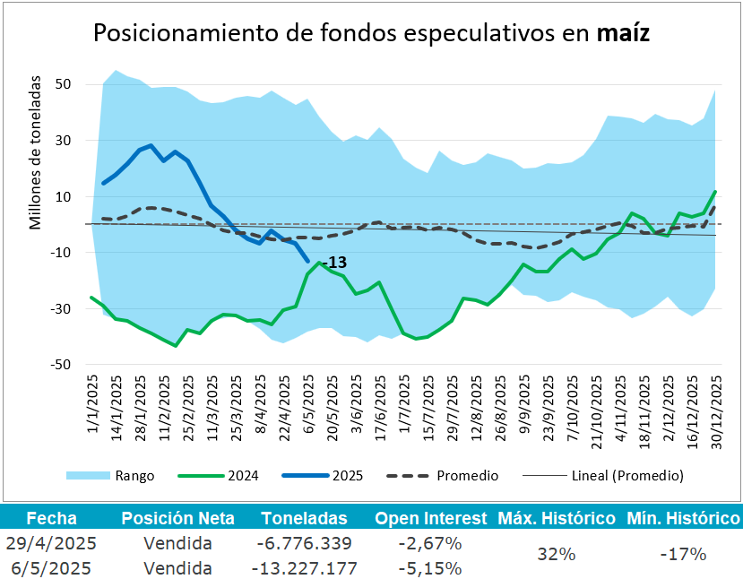 Para ver la evolución de la posición neta de los fondos especulativos y gráficos comparando con campañas anteriores, podes ver el informe completo.