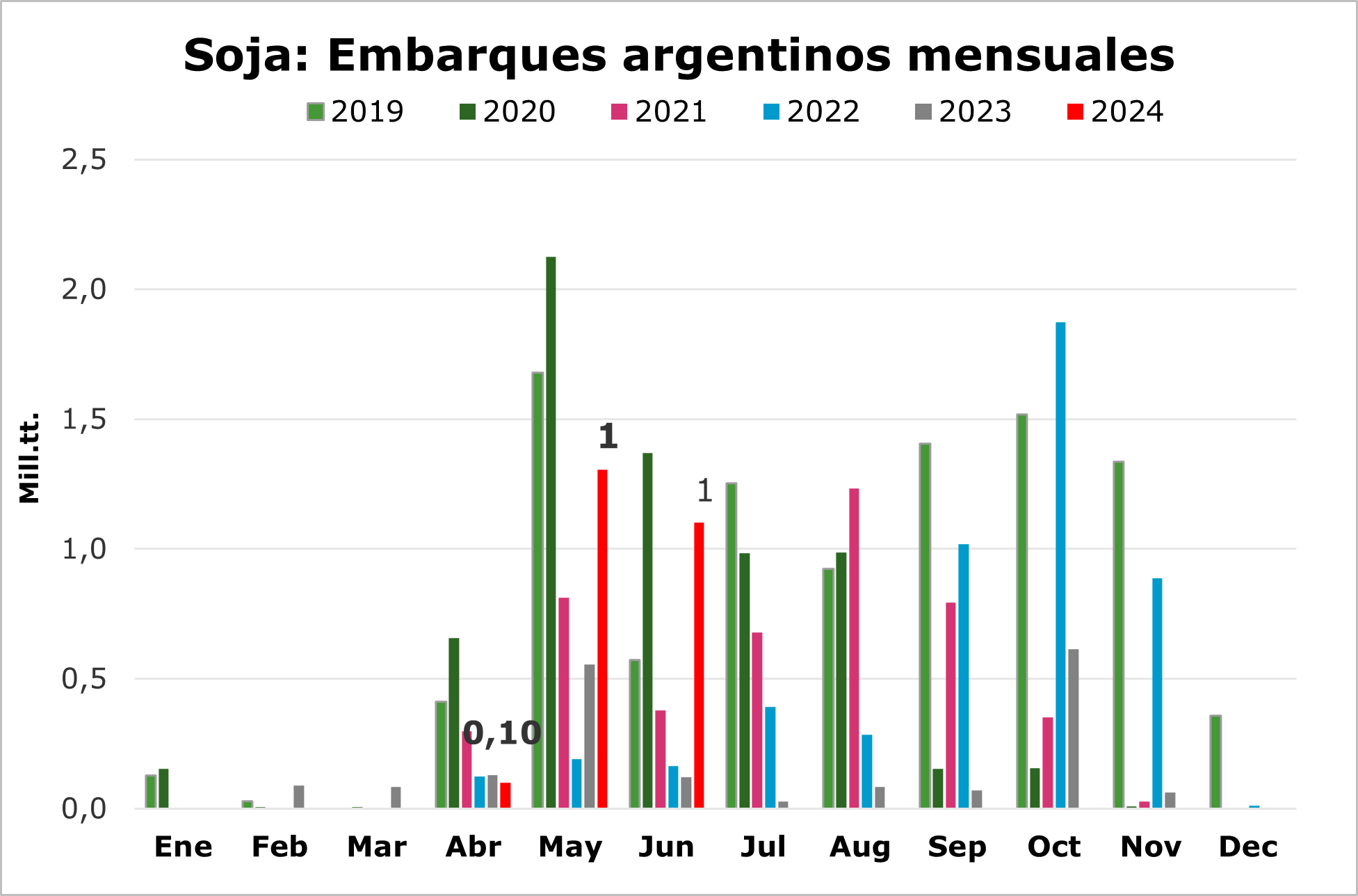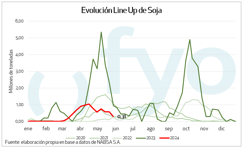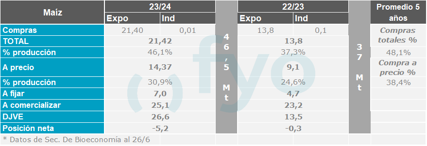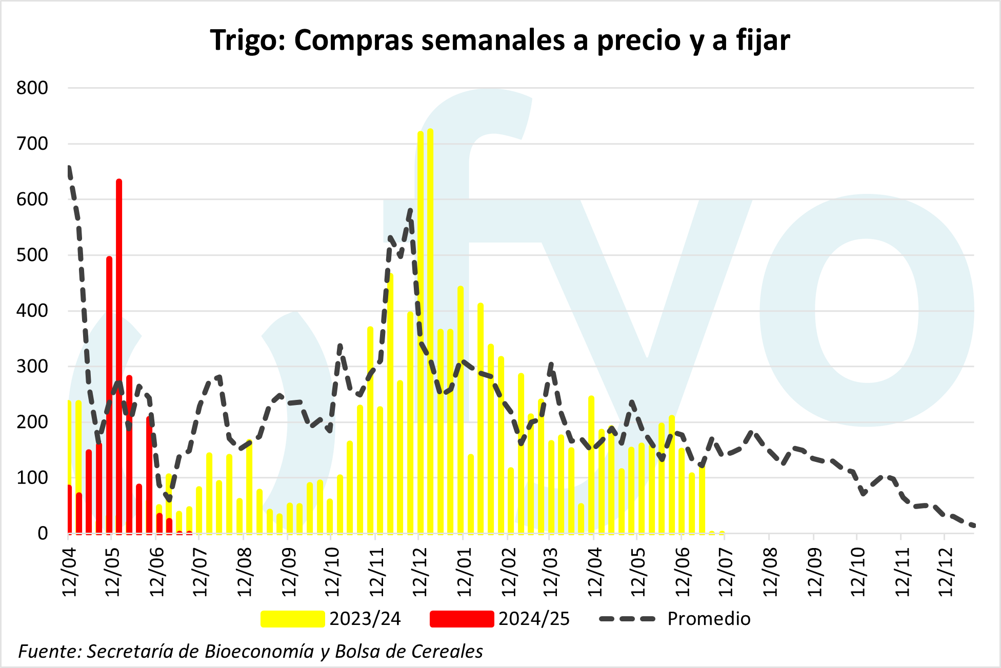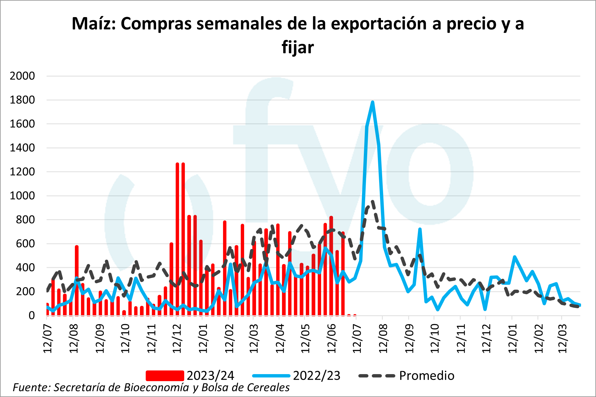 Para la semana finalizada el 7 de agosto, la originación de soja creció de 469.900 a 827.600 t entre semanas, superior al promedio semanal. En tanto, el volumen de pricing por parte del sector exportador de maíz creció de 655.900 a 932.100 t, por encima del promedio semanal. El trigo nuevo continúa anotando de bajo volumen de pricing (menos de 10.000 t semanales) debido a los bajos precios, que acarrean márgenes negativos por parte de los compradores.
