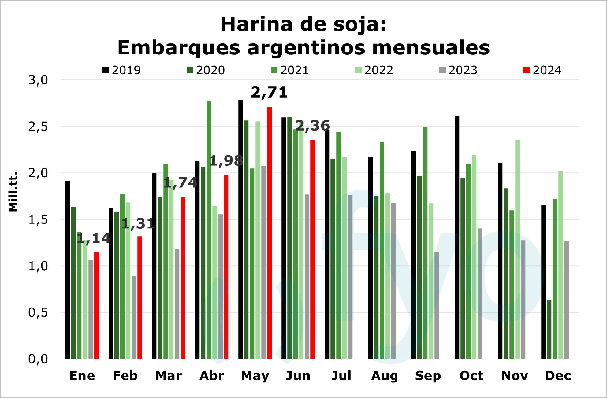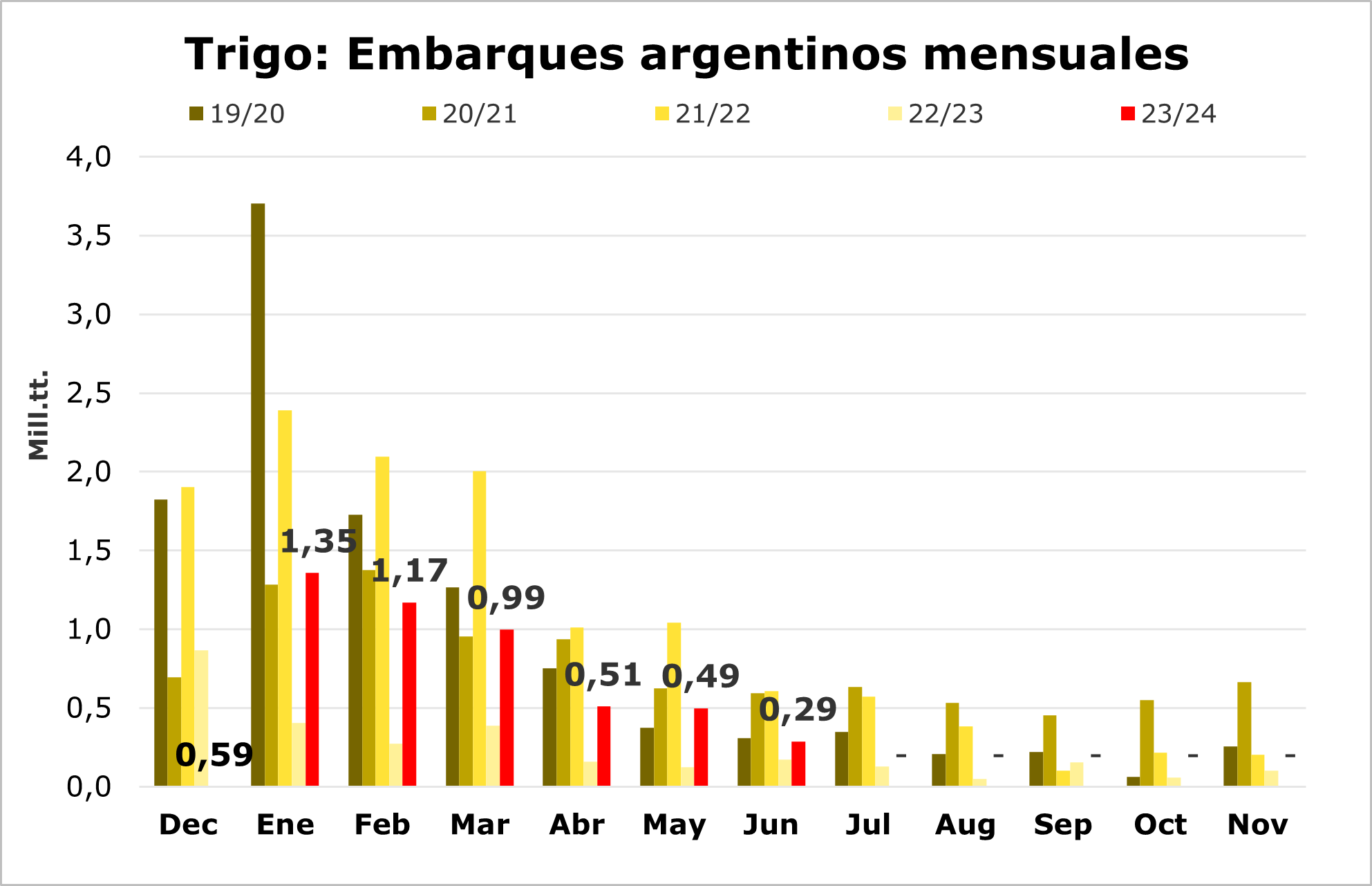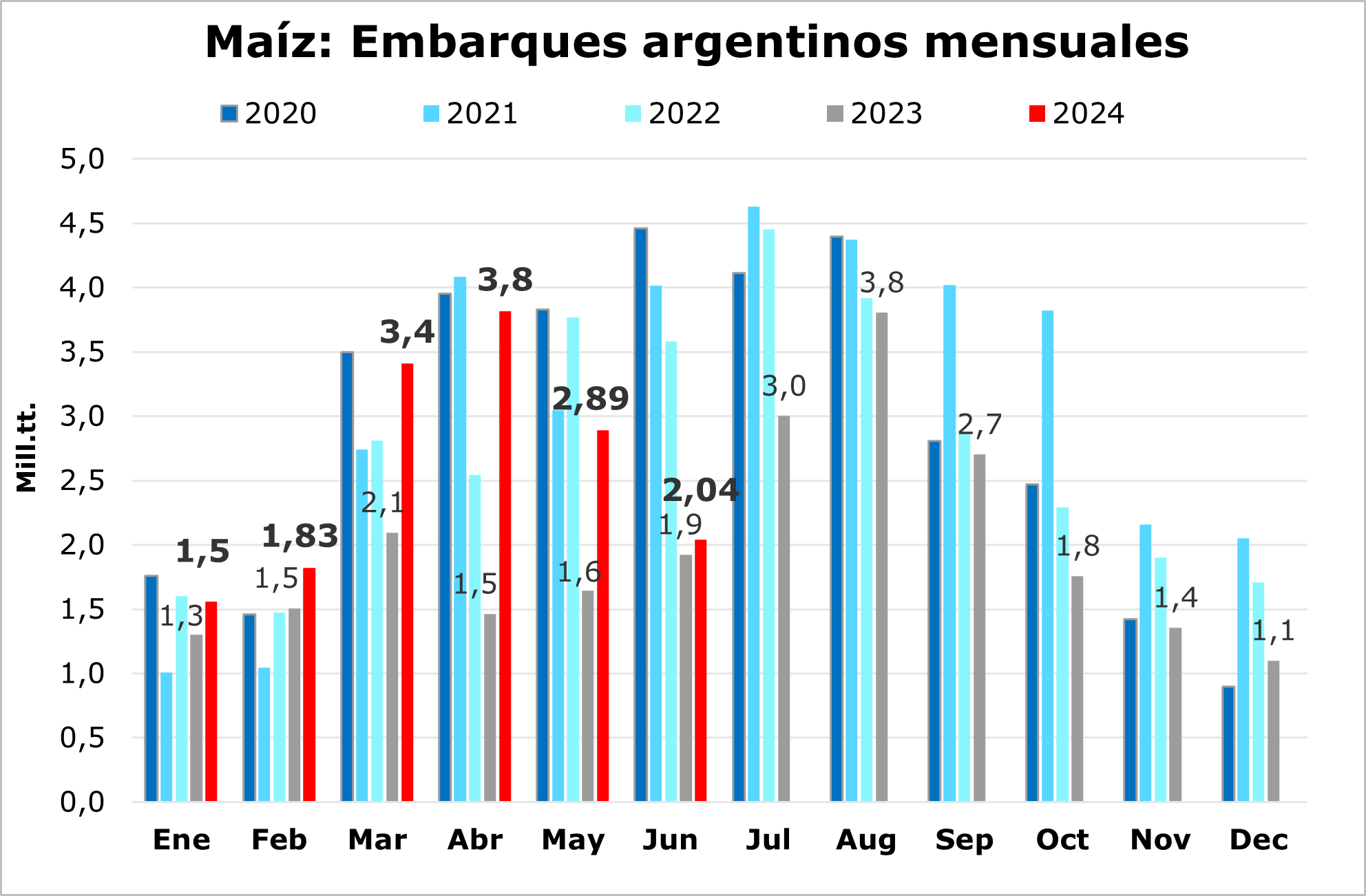 Para la semana finalizada el 7 de agosto, la originación de soja creció de 469.900 a 827.600 t entre semanas, superior al promedio semanal. En tanto, el volumen de pricing por parte del sector exportador de maíz creció de 655.900 a 932.100 t, por encima del promedio semanal. El trigo nuevo continúa anotando de bajo volumen de pricing (menos de 10.000 t semanales) debido a los bajos precios, que acarrean márgenes negativos por parte de los compradores.