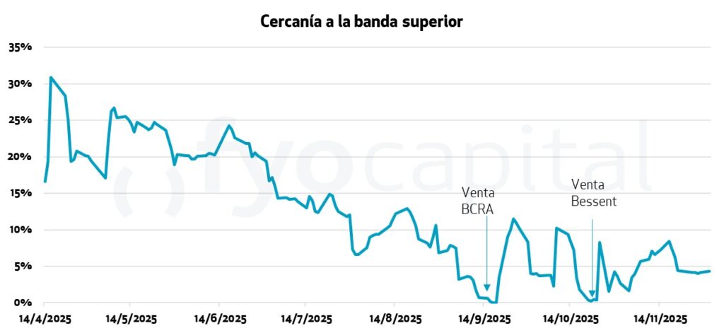 Con el tipo de cambio a 3,97% del límite superior de la banda al momento de escribir estas líneas, vuelve a aparecer la pregunta acerca de si el BCRA se verá de nuevo en la obligación de defender el techo de la banda cambiaria, y más importante aún, cuál sería la reacción del mercado en un contexto en el cual el Tesoro ha vuelto a descapitalizar al Banco Central para el pago de vencimiento de deudas. Durante el mes de noviembre el Tesoro le compró al BCRA alrededor de 1.100 millones de dólares mientras que lleva comprados por mercado apenas 300 desde las elecciones. Todo marcha bien por ahora en el mercado de cambios y en el de pesos, con lo cual posiblemente sea el mejor momento para llevar adelante modificaciones que se anticipen y eviten nuevas dinámicas incómodas para el Tesoro y el Mercado.