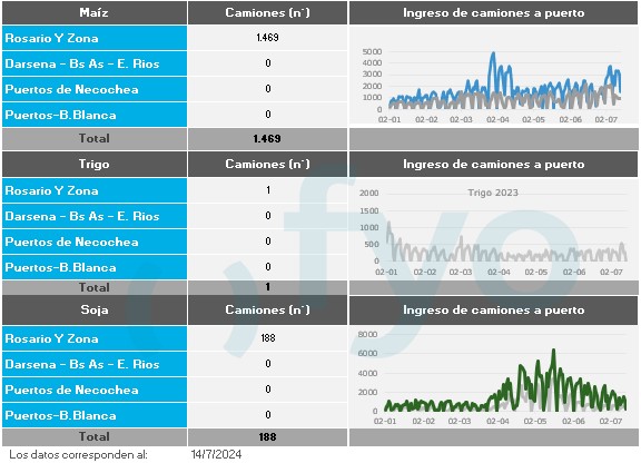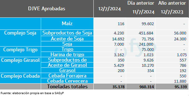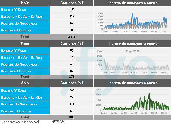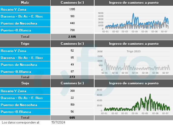 Para la semana finalizada el 31 de julio, el pricing de soja bajó de 773.000 a 596.000 t entre semanas, inferior al promedio semanal. En tanto, el volumen de pricing por parte del sector exportador de maíz diminuyó de 1,074 Mt a 655.900 t, por debajo del promedio semanal. El trigo nuevo continúa anotando de bajo volumen de pricing (menos de 10.000 t semanales) debido a los bajos precios, que acarrean márgenes negativos por parte de los compradores. Asimismo, se anotaron más de 100.000 t de trigo nuevo a fijar.