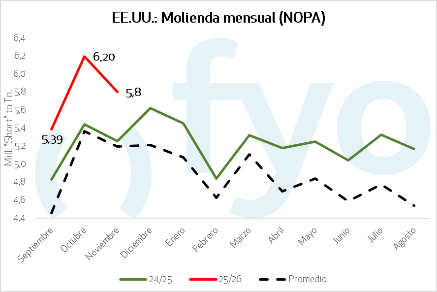 Este desempeño se sustenta en la competitividad FOB, especialmente frente a los precios de Brasil, que se han encarecido relativamente, dejando a EE.UU. como una opción atractiva para la demanda global en esta ventana comercial.