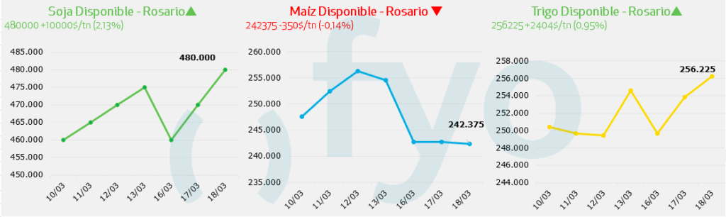 - Por trigo disponible en Rosario se pagaron USD 185.