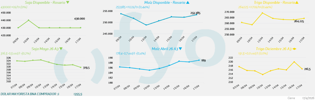 - Irán declara la reapertura del Estrecho de Ormuz para el tránsito de buques comerciales tras el acuerdo de alto el fuego entre Israel y el Líbano. La caída en los mercados de energía impacta directamente en el complejo oleaginoso, limitando la competitividad del biodiésel.
