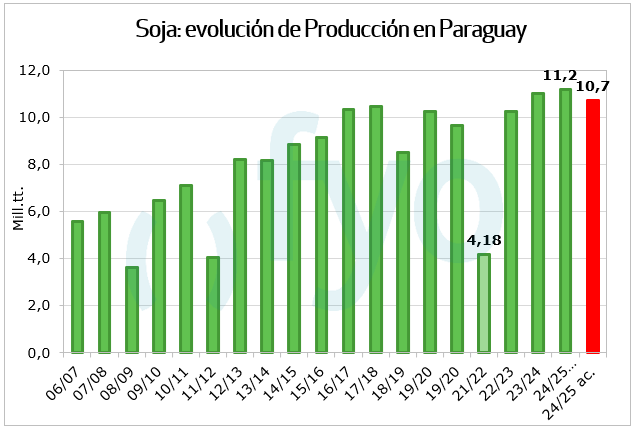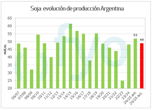 Para Brasil también recortó en 1 Mt la estimación de produccion para soja, quedando en 126 Mt compensado por mismo recorte en exportaciones, lo que nos deja con los mismos stocks finales de 2,8Mt.