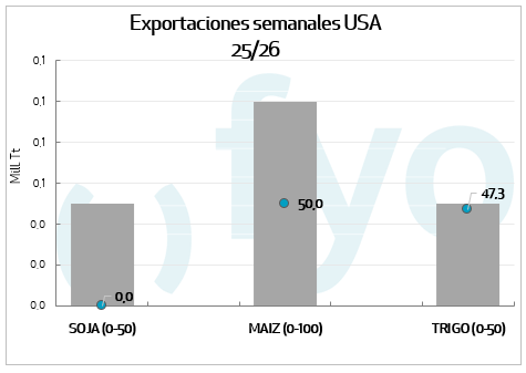 Las ventas de soja se ubicaron en el rango inferior esperado por el mercado, alcanzando las 0,3 Mt. Si bien el volumen resulta inferior a lo informado la semana precedente, supera las ventas promedio para la fecha en contextos donde la soja norteamericana comienza a perder importancia frente al ingreso de los granos de Brasil.