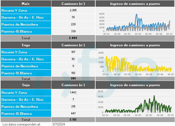 - Los puertos del sur tuvieron una pérdida de valores en $5.000, valiendo $255.000 en Bahía Blanca y $250.000 en Quequén.