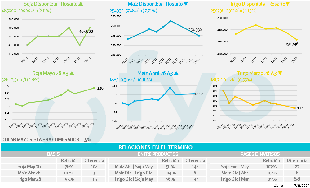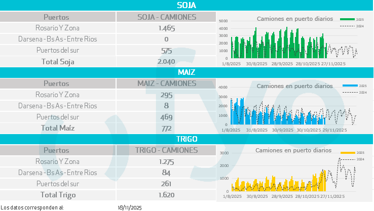 - Datos de aduanas mostraron que China importó 360.000 toneladas de maíz en octubre, un aumento del 43,1% interanual, aunque el acumulado del año muestra una reducción significativa (-90%).