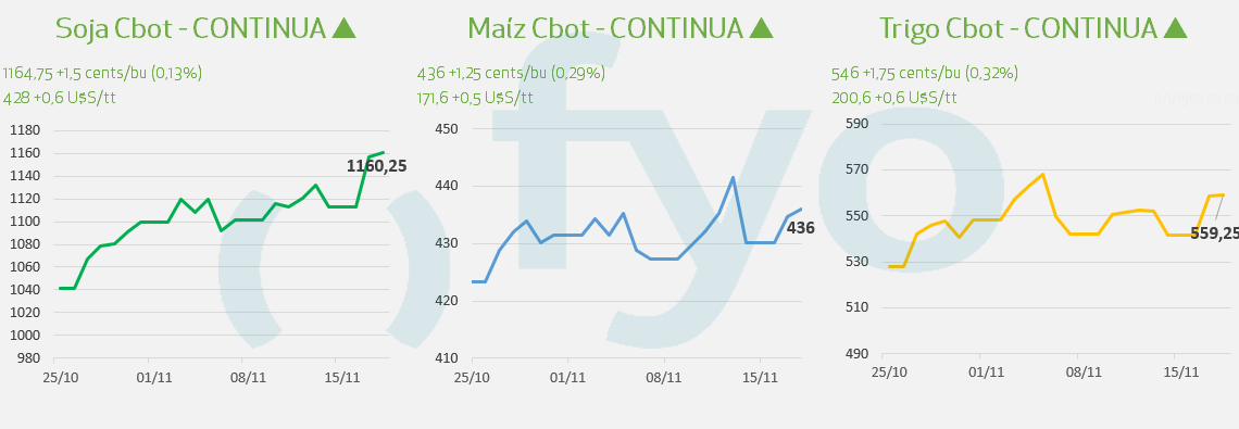 - Las importaciones de trigo de China en octubre fueron de 160.000 toneladas, registrando una caída del 29,8% respecto al mismo mes del año anterior y una caía del 71,3% del año acumulado con respecto al año previo.