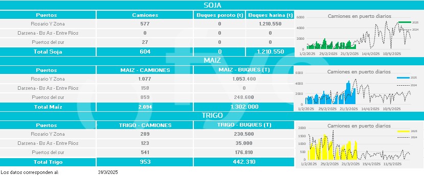 Buques: partiendo de los buques anunciados por las agencias marítimas o line-up se calculan las toneladas a cargar de cada uno de los distintos productos en cada puerto.