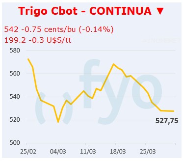 - Continúa pensando sobre los futuros de trigo el clima favorable en los cinturones de trigo de Estados Unidos y Rusia y las expectativas de exportaciones más suaves de Rusia.