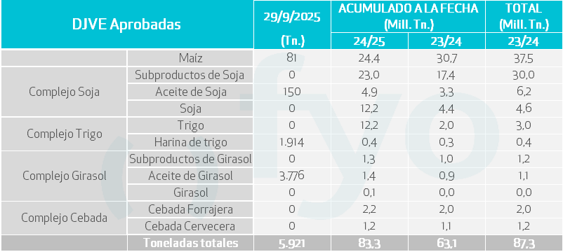- Ayer el USDA confirmó ventas de exportación del sector privado por 135.660 toneladas de maíz a México y 110.668 toneladas a destinos no revelados, para el maíz 2025/26.