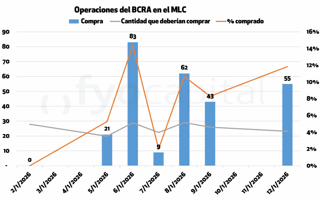 Conforme al nuevo esquema cambiario y monetario que comenzó a regir el 01/01/2026, el BCRA puede volver a inyectar pesos en la economía, pero únicamente mediante la compra de divisas en el mercado de cambios. Esto lo separa del esquema anterior, según el cual el BCRA no podía comprar divisas a menos que el precio del dólar llegue a tocar la banda inferior. Durante la primera semana del año, en la cual hubo apenas una rueda, el BCRA estuvo al margen del mercado de cambios. Pero para la segunda semana con el nuevo esquema de remonetización de la economía mediante la compra de USD por el BCRA se lanzó con todo. De esta operatoria inicial extrajimos algunas conclusiones iniciales.