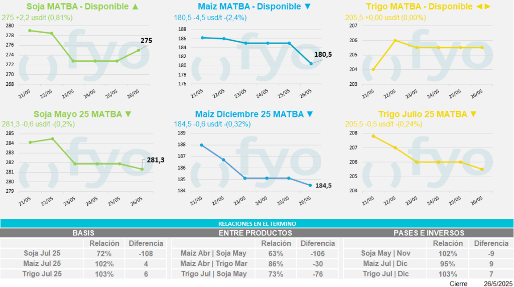 - Las recientes lluvias en zonas secas del norte de Europa y los pronósticos de precipitaciones en regiones de cultivo afectadas por la sequía en China, junto con una revisión al alza del pronóstico de rendimiento en la Unión Europea y una estimación de producción mejorada para Rusia, han contribuido a la baja de los precios.