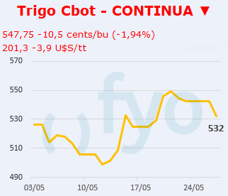 - Los futuros en Chicago operan a la baja por tercera rueda consecutiva debido a un menor riesgo climático en el hemisferio norte.