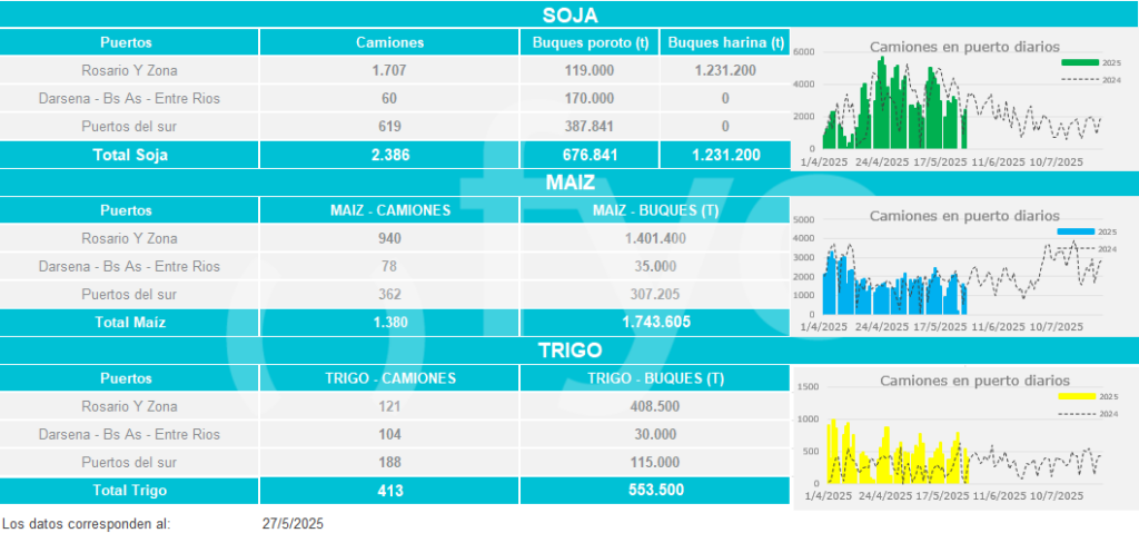 Buques: partiendo de los buques anunciados por las agencias marítimas o line-up se calculan las toneladas a cargar de cada uno de los distintos productos en cada puerto.
