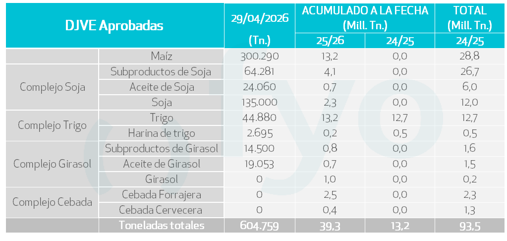 - Egipto informa la recolección de 729.344 toneladas de trigo local, una cifra 13% superior al mismo periodo de 2025, pero 26,9% por debajo del volumen alcanzado en 2024.