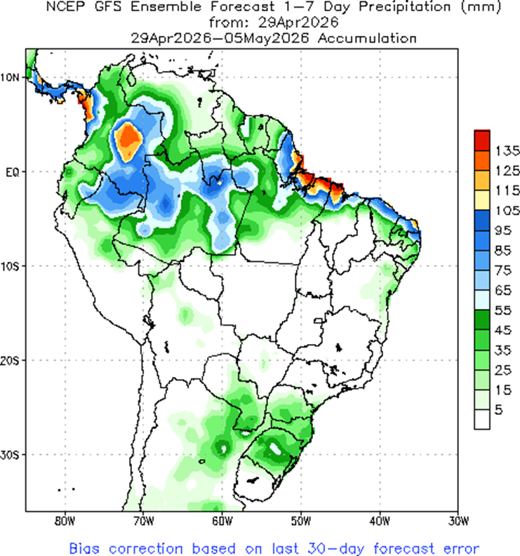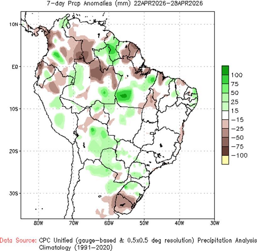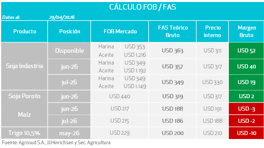 - La siembra temprana en EE.UU. muestra un progreso favorable, aunque se monitorean pronósticos de tormentas en el Medio Oeste que podrían generar retrasos puntuales en la incorporación de lotes.