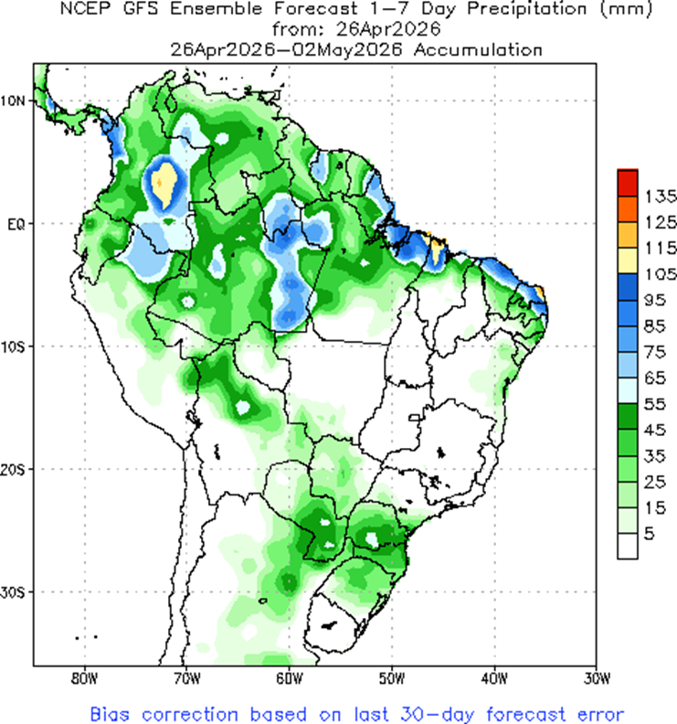 - Los fondos especulativos efectuaron ventas netas en la semana finalizada el 14 de abril, por 1,1 Mt recortando su posición vendida a 8,3 Mt.