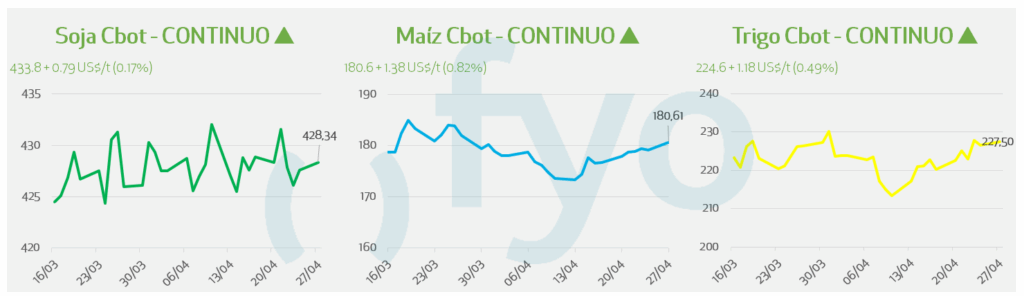 - El mercado monitorea el progreso de la siembra en el Medio Oeste de Estados Unidos, donde se pronostican tormentas que podrían generar retrasos en las labores de campo.