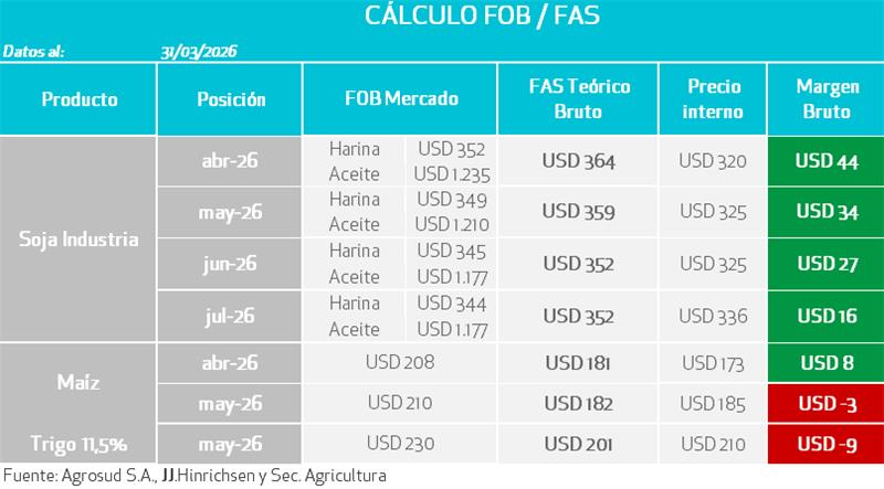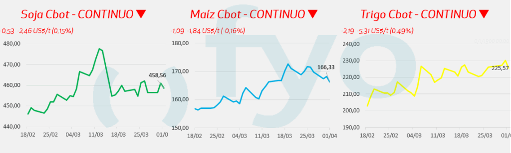 - El mercado internacional sigue de cerca las declaraciones del gobierno de EE.UU. sobre la posibilidad de finalizar los ataques en Irán, lo que reduce la prima de riesgo en los commodities agrícolas.
