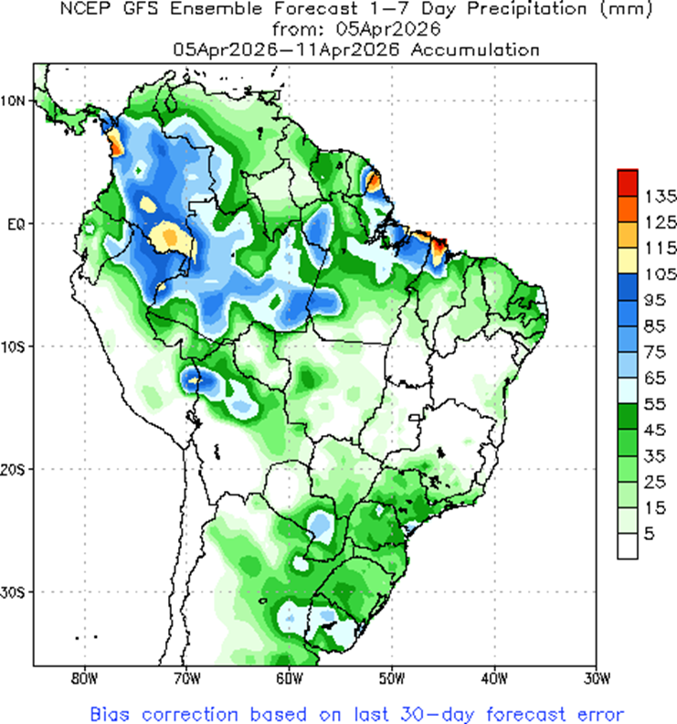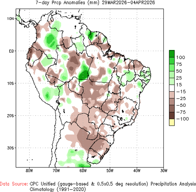- El Departamento de Agricultura de EE. UU. reporta ventas de exportación de maíz por 1,1 Mt en la semana finalizada el 26 de marzo, una caída del 20% frente al promedio de las cuatro semanas previas.