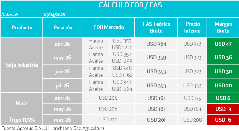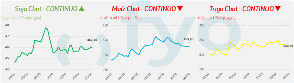 - Opera con leves ganancias, impulsada por la firmeza en el complejo de aceites vegetales y el impacto del conflicto en el Medio Oriente que mantienen el crudo BRENT superando los USD100 por barril.