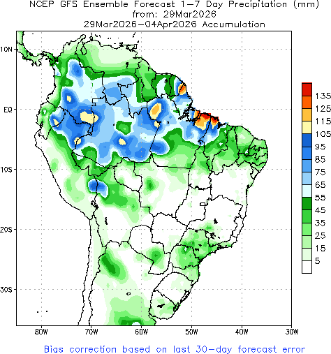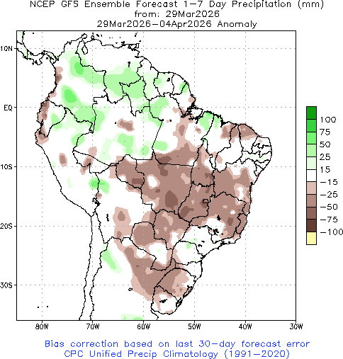 - Persiste la preocupación por el déficit hídrico en las llanuras del sur de Estados Unidos, donde las altas temperaturas recientes incrementan el riesgo de estrés hídrico para los cultivos de invierno.