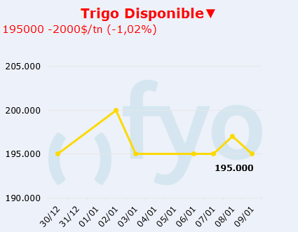 - Por trigo disponible en Rosario se pagaron $ 195.000, mientras que por trigo a cosecha se pagaban USD 197. Tuvimos una jornada muy activa en el Término, con el trigo diciembre subiendo para ajustar en USD 202,5.