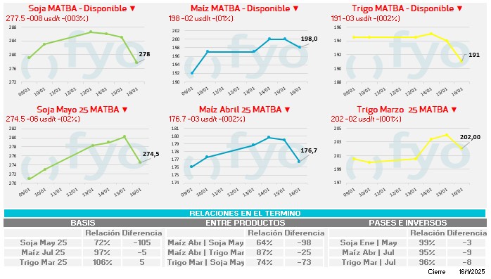 Granos maíz, trigo, soja, harina de soja, aceite de soja, cebada, arroz, trigo y canola.