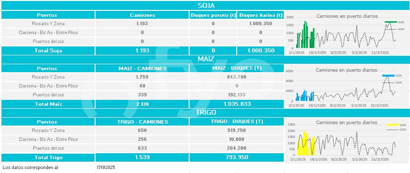 Buques: partiendo de los buques anunciados por las agencias marítimas o line-up se calculan las toneladas a cargar de cada uno de los distintos productos en cada puerto.