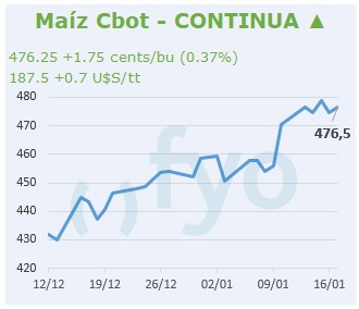 - Los futuros del maíz en Chicago cotizan al alza en Chicago en las posiciones más próximas respaldados por un panorama de oferta más ajustado, con los agricultores norteamericanos vendiendo importantes volúmenes del cereal dada la mejora de los precios.